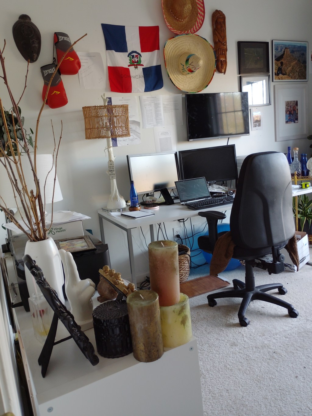 I’m going for a moody, cozy space, with much needed storage. So, the plan is to paint the entire room one color, walls, ceiling and trim. Purchase a new concealed storage unit to hide all my stuff, the current one is open shelving that I don’t keep neat enough. Change the desk for one of the others I already have, change the ceiling fan out for a light fixture, new lamp, new curtains, and new art. Lastly, I will be shopping my home for some accessories to save on expenses. I will follow up soon with more updates. I hope you follow along and give some encouragement. I have attached photos of the current space, don’t judge me lol.